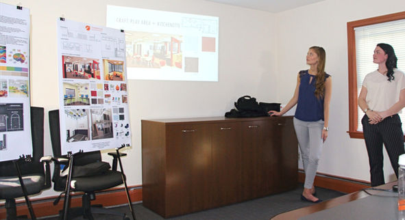 In teams, students completed a service-learning project, in which they developed design solutions for the Chesterbrook Learning Center in Waltham, MA. Students met with stakeholders and users of the space and took site measurements. They developed a set of documents and deliverables including design posters, a presentation booklet, budget, and specifications to present to the Chesterbrook Learning Center Board of Directors.